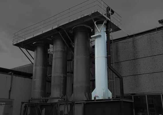 Vertikaler Kondensator, mit Titan Rohren und PE Vorköpfen.